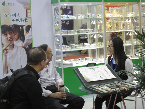 展會現(xiàn)場-千帆全面展示了新型包埋標本、中小學標包埋標本、學前教育益智等系列產(chǎn)品