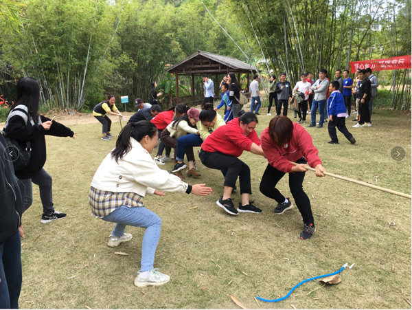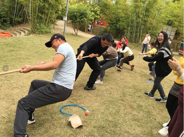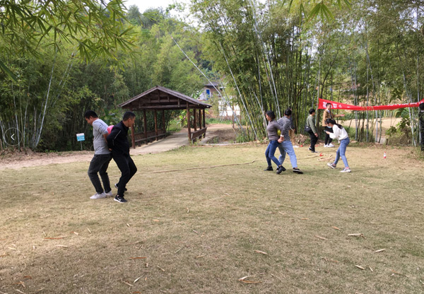 懷著激動的心情,經(jīng)過短暫的車程后,大家于10:00左右來到本次活動的目的地--長龍歡樂谷山莊。首先,分組進行了豐富多彩的體育運動,有六人單腳跳、運輸氣球、拔河等項目。在運動中,大家團結協(xié)作、歡聲笑語,平日里高強度的工作壓力被釋放一空;顒永送轮g的距離,更增強了集體榮譽感。